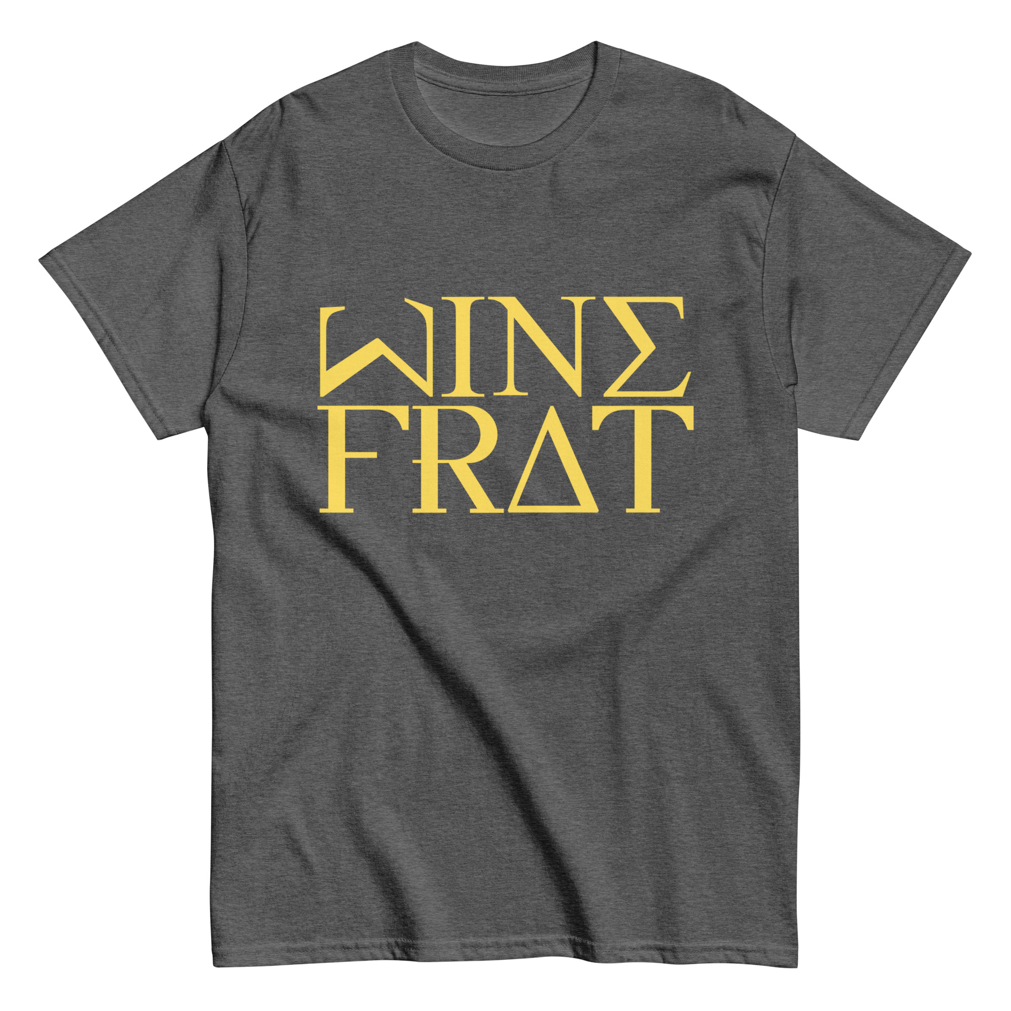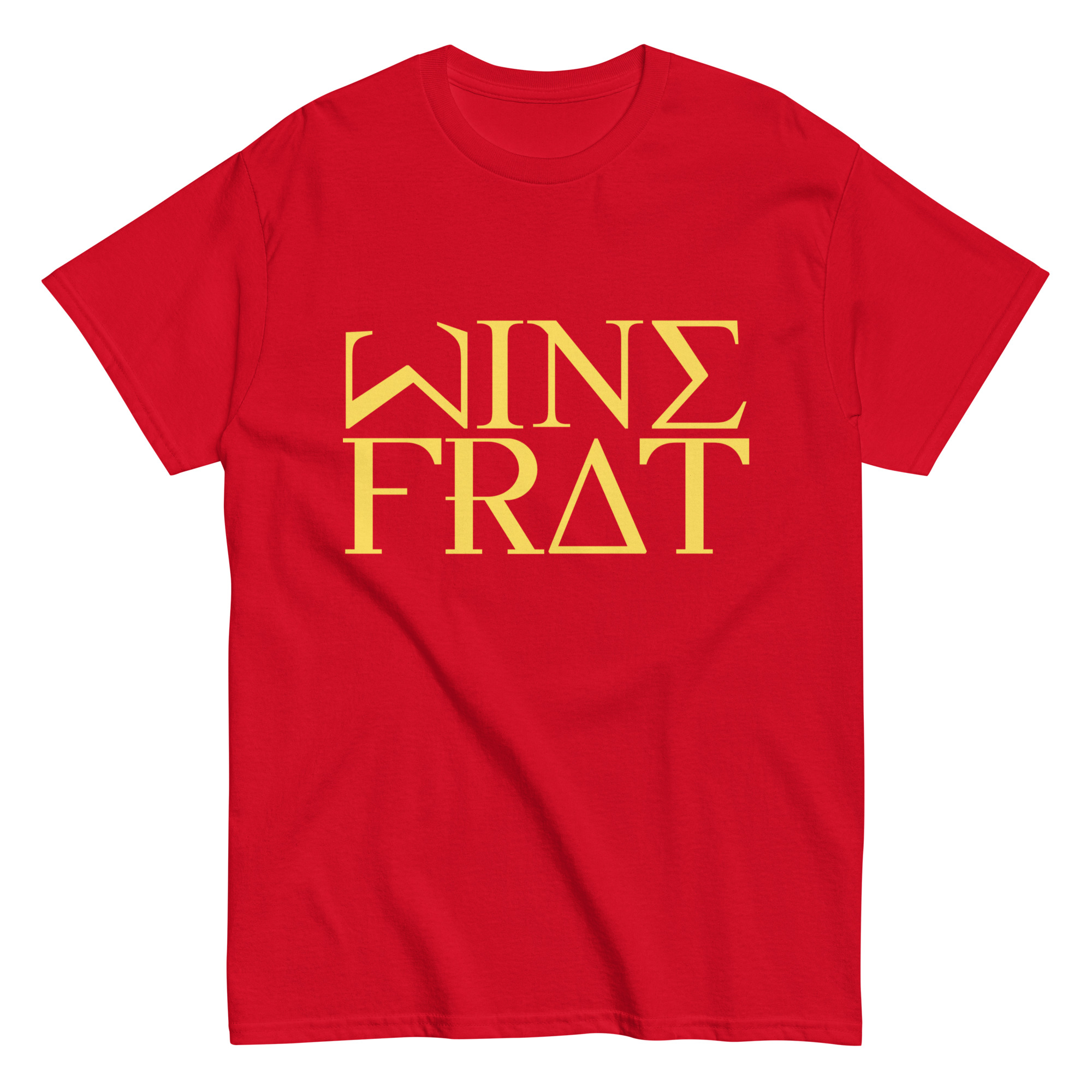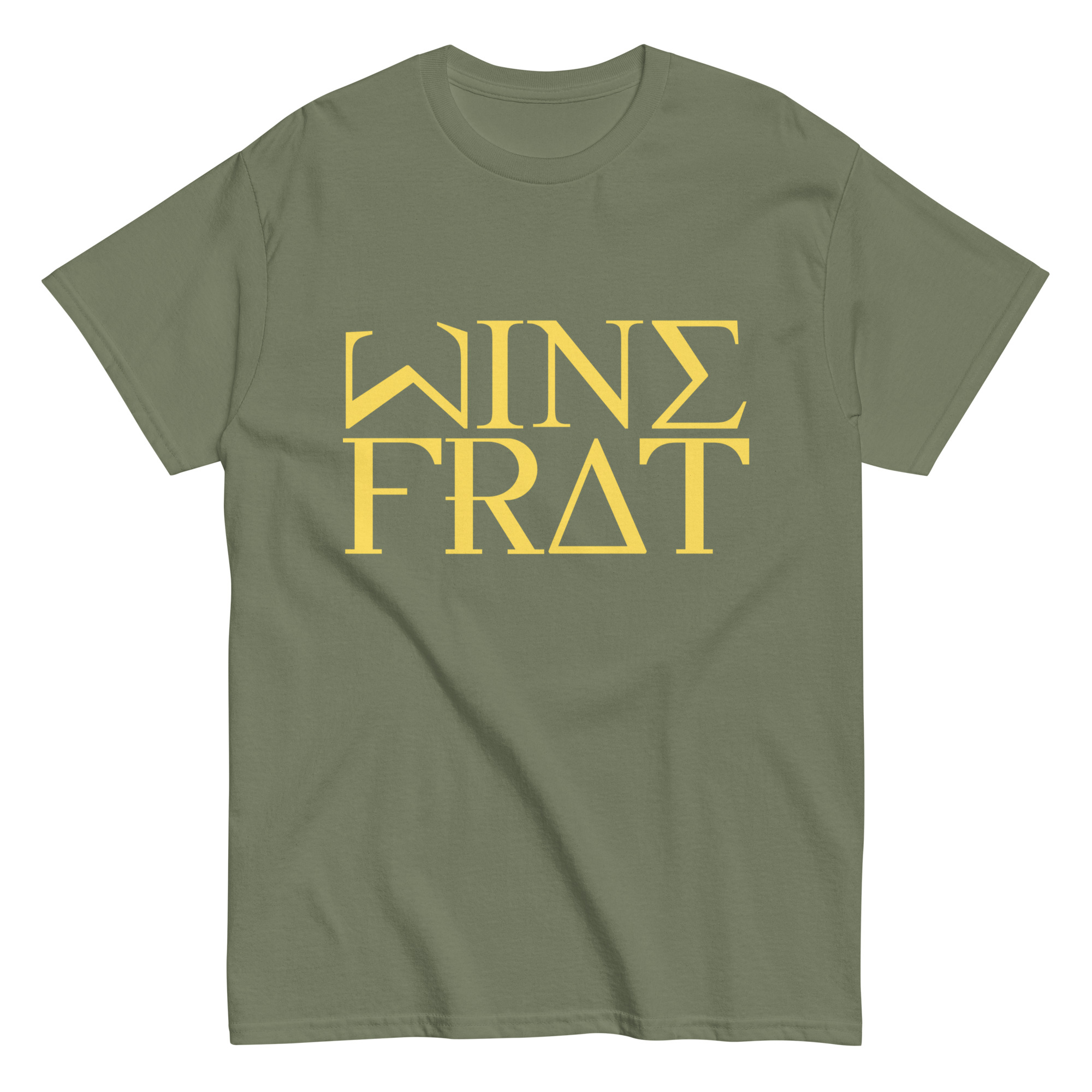 Men’s classic tee WineFrat-Basic-in-Yellow-Letters