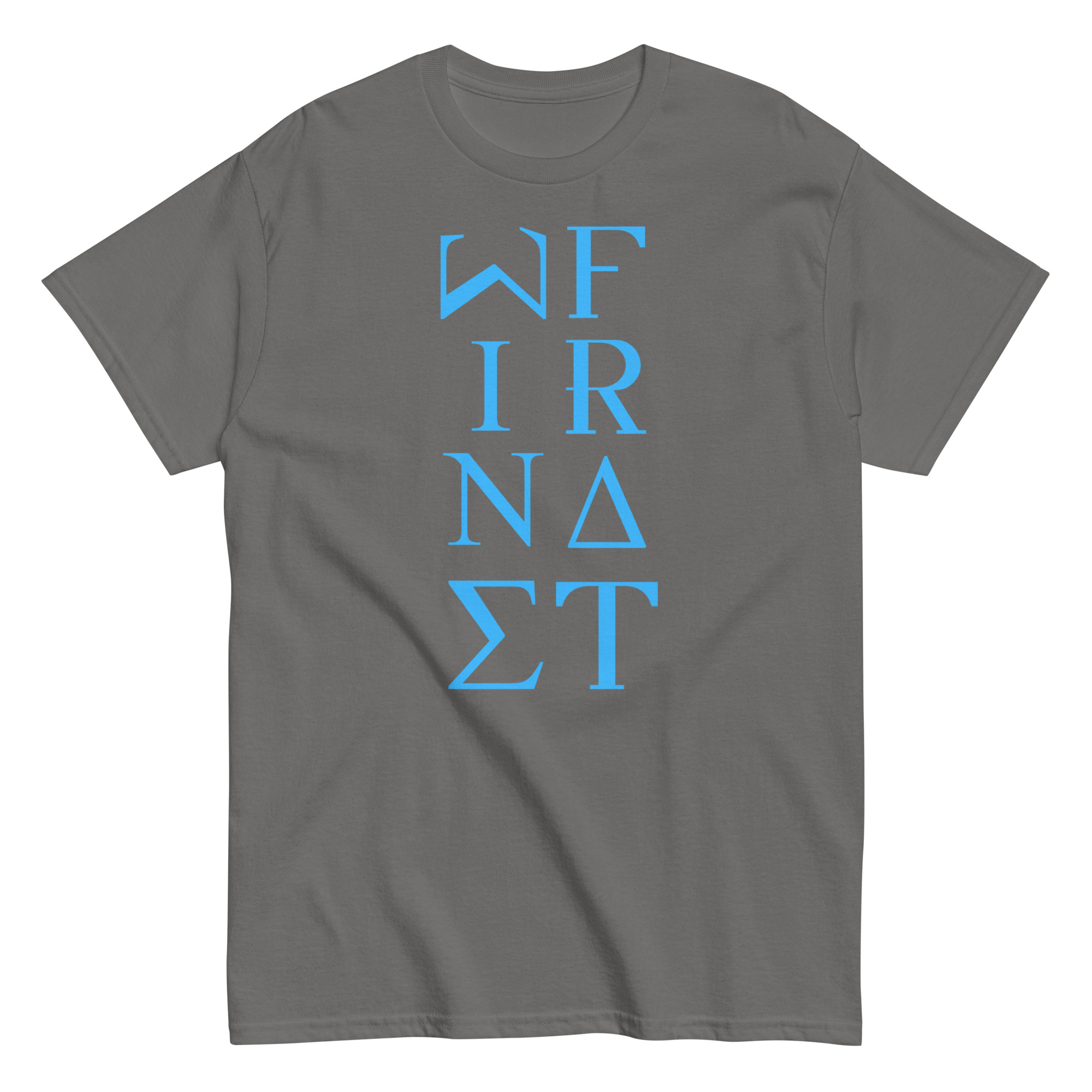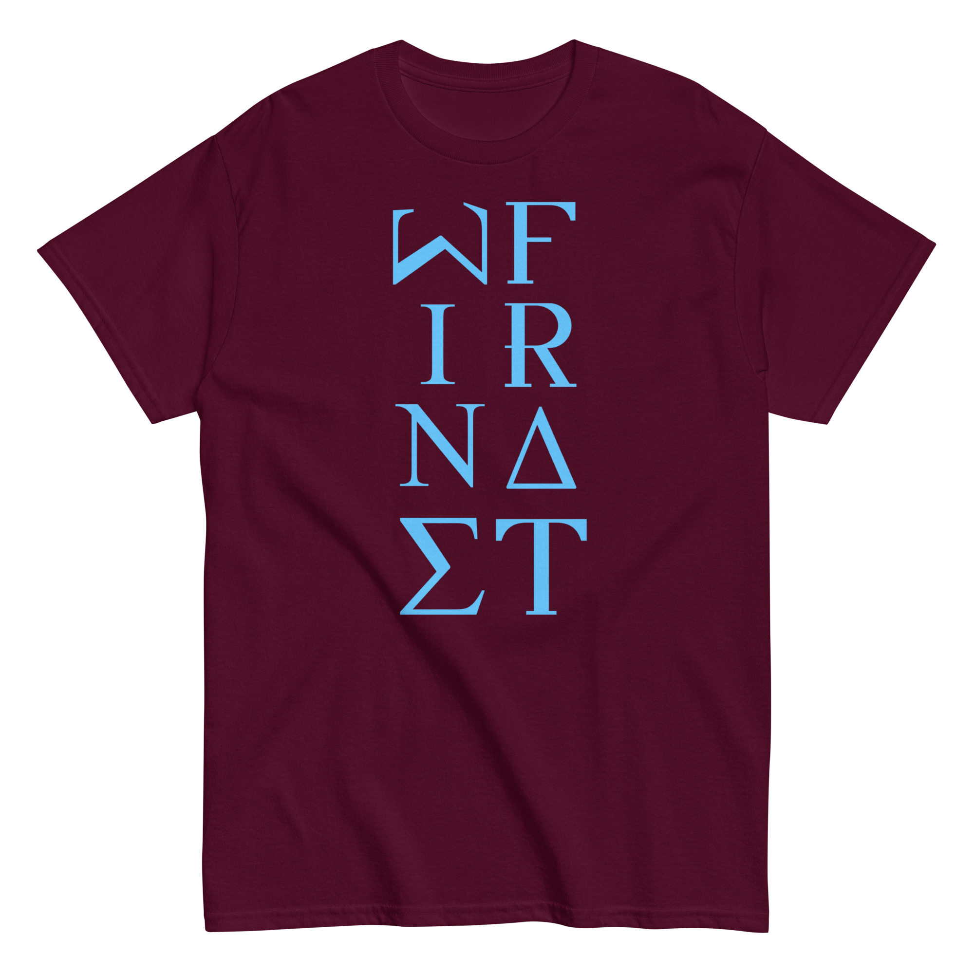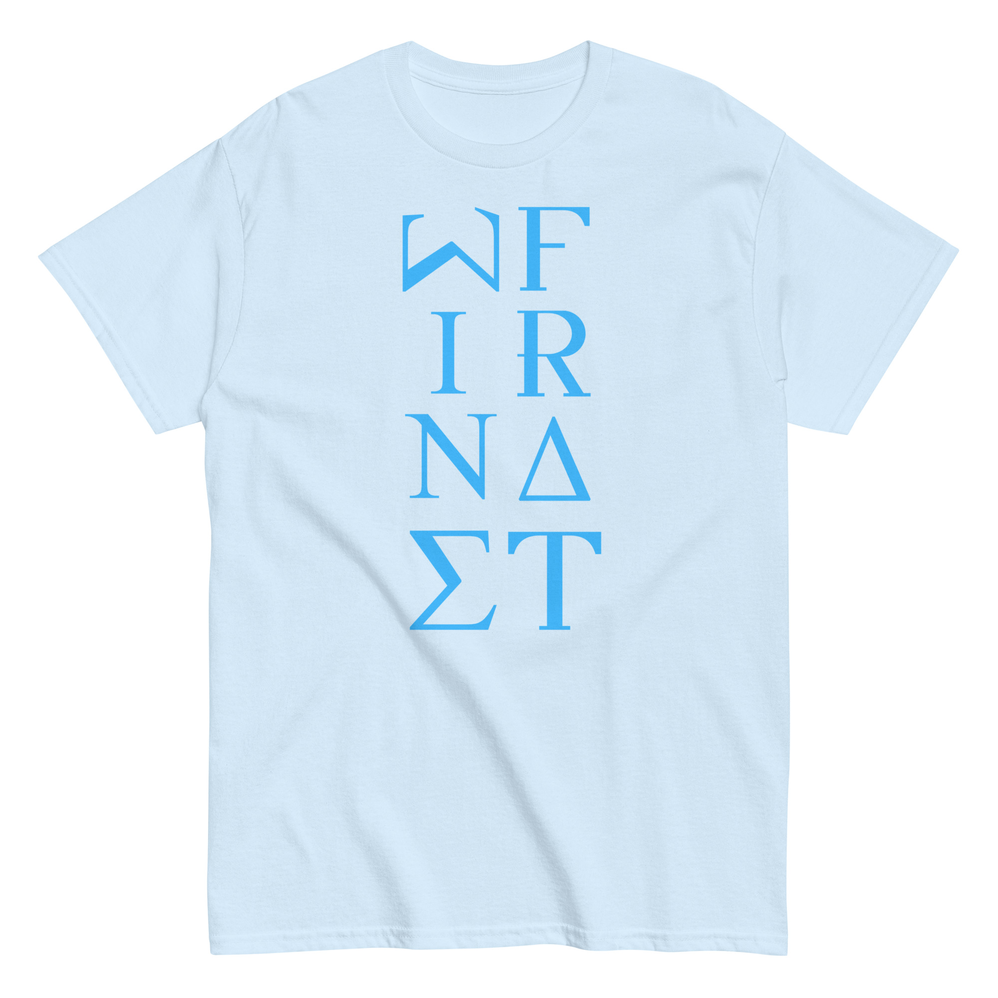 Men’s classic tee WineFrat-Line-in-Light-Blue-Letters